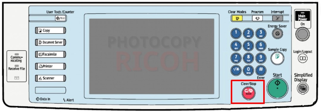 Phím Clear mode được sử dụng để người dùng xóa các thiết lập hiện tại, đưa máy photocopy về trạng thái cài đặt màn hình chính ban đầu.